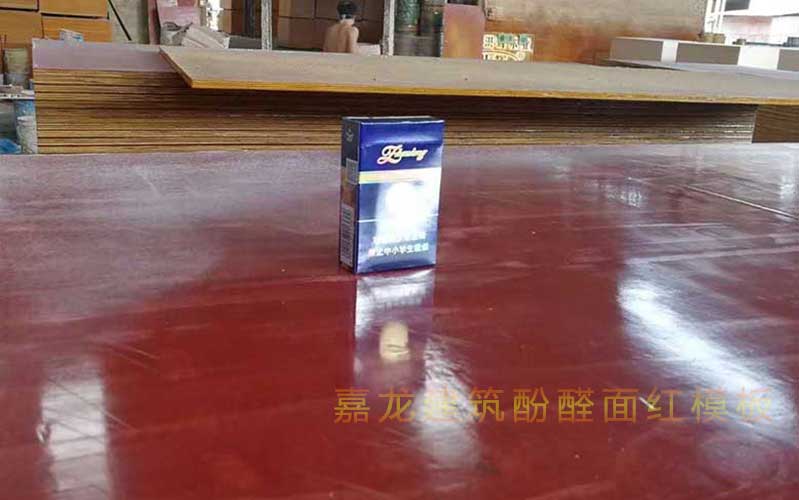 建筑酚醛面紅模板是建筑模板種類下的一種,一級桉木芯板和一級松木面板壓制而成,其表面滾有合明自主研制的紅色防水膠,每張紅板面板滾1千克膠水,面膠層厚實,防水效果好。